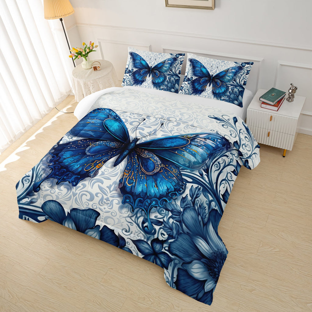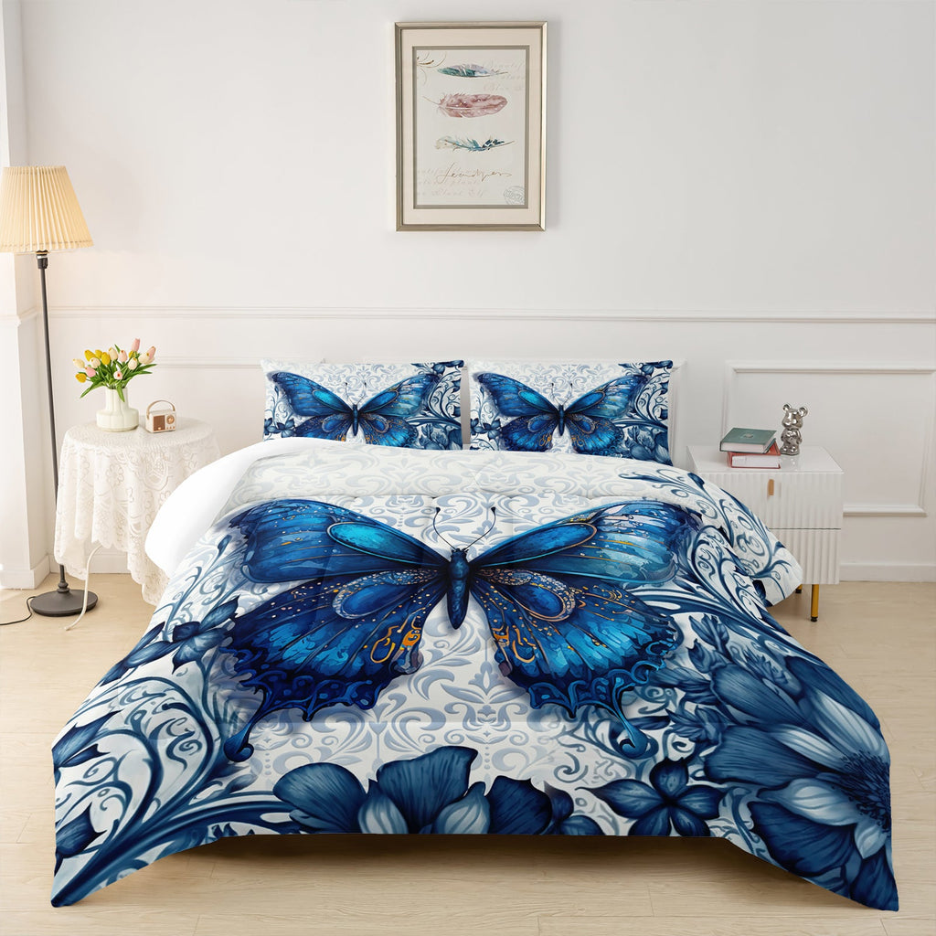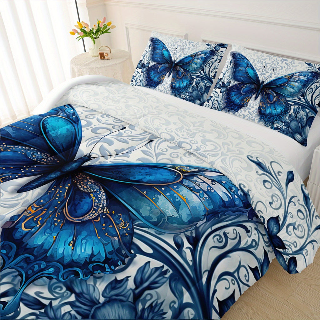 1 Set Blue Butterfly Comforter Set - Soft & Cozy Polyester Microfiber Bedding with 1 Comforter and 2 Pillowcases, Machine Washable, Digital Print, Woven Sanded Fabric, 95gsm - Elegant Room & Bedroom Decor