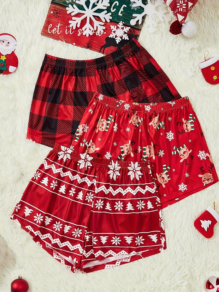 3-Pack Women's Christmas Pajama Shorts, Festive Holiday Sleepwear, Polyester Knit Lounge Pants, Adult Size, Seasonal Home Wear