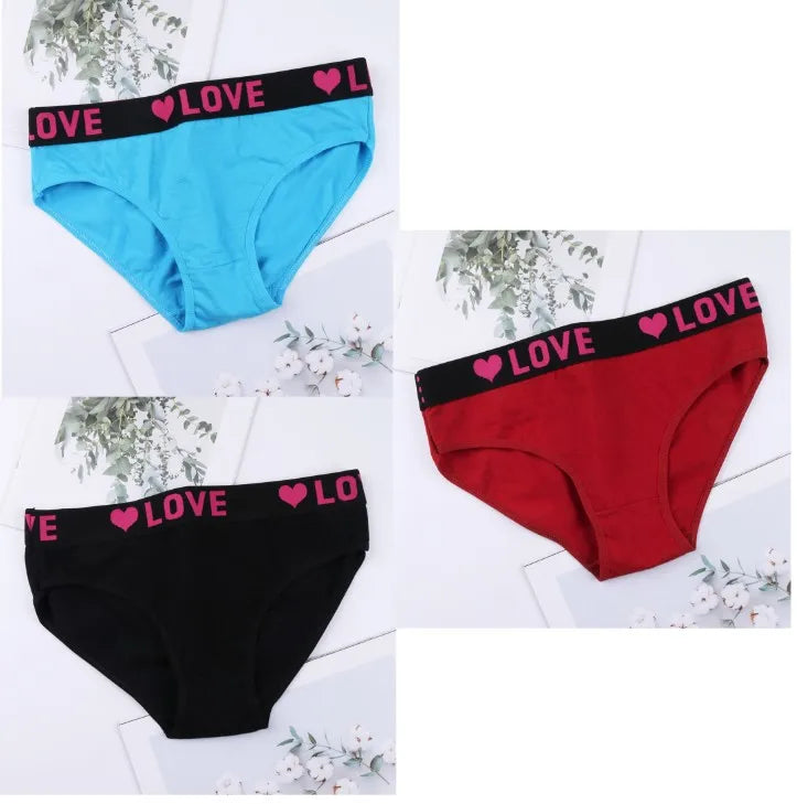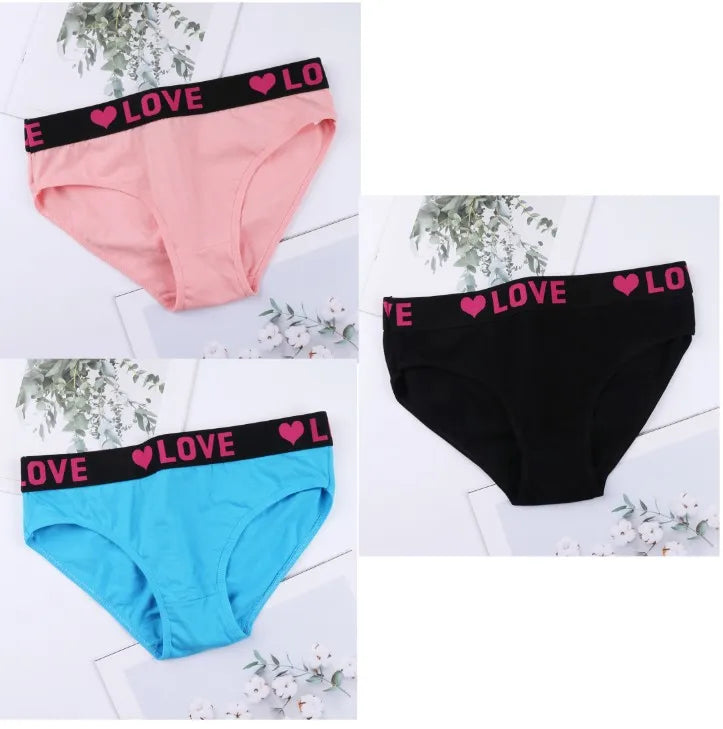 3PCS Girl's Low Waist Briefs Women's Love Letter Printing Underwear