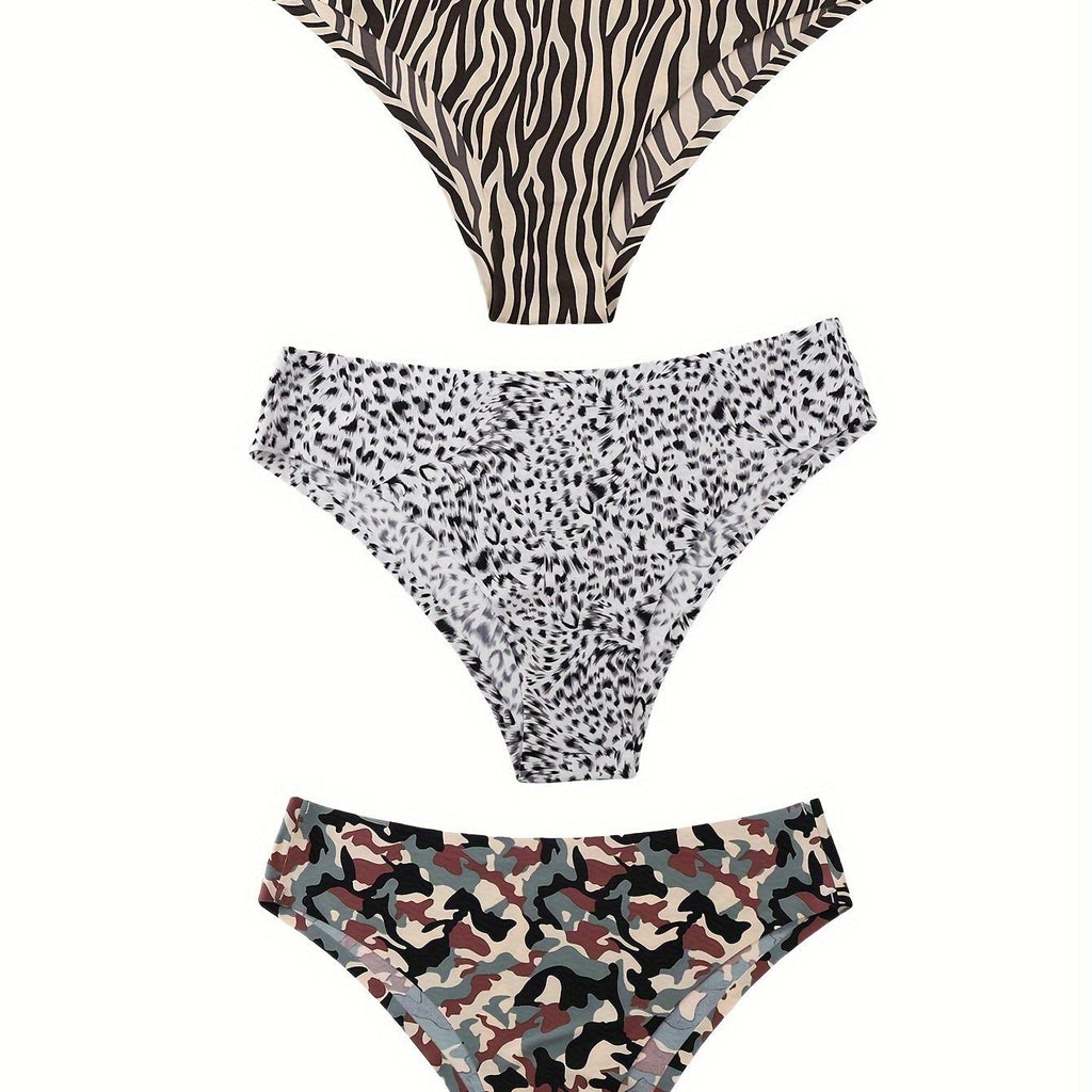 3pcs Seamless Zebra Print Briefs, Sexy Comfy Breathable Stretchy Intimates Panties, Women's Lingerie & Underwear