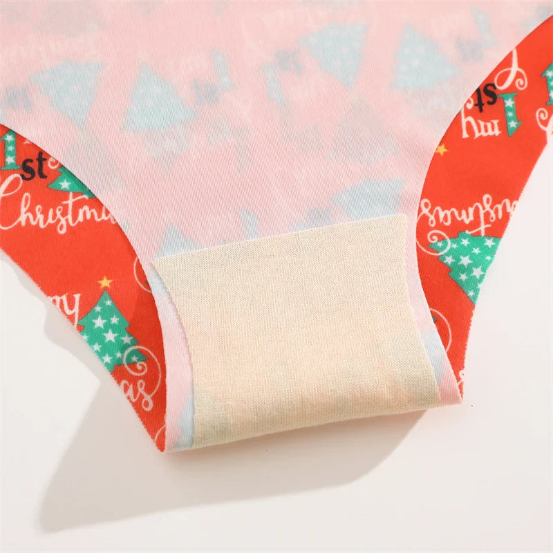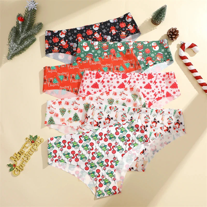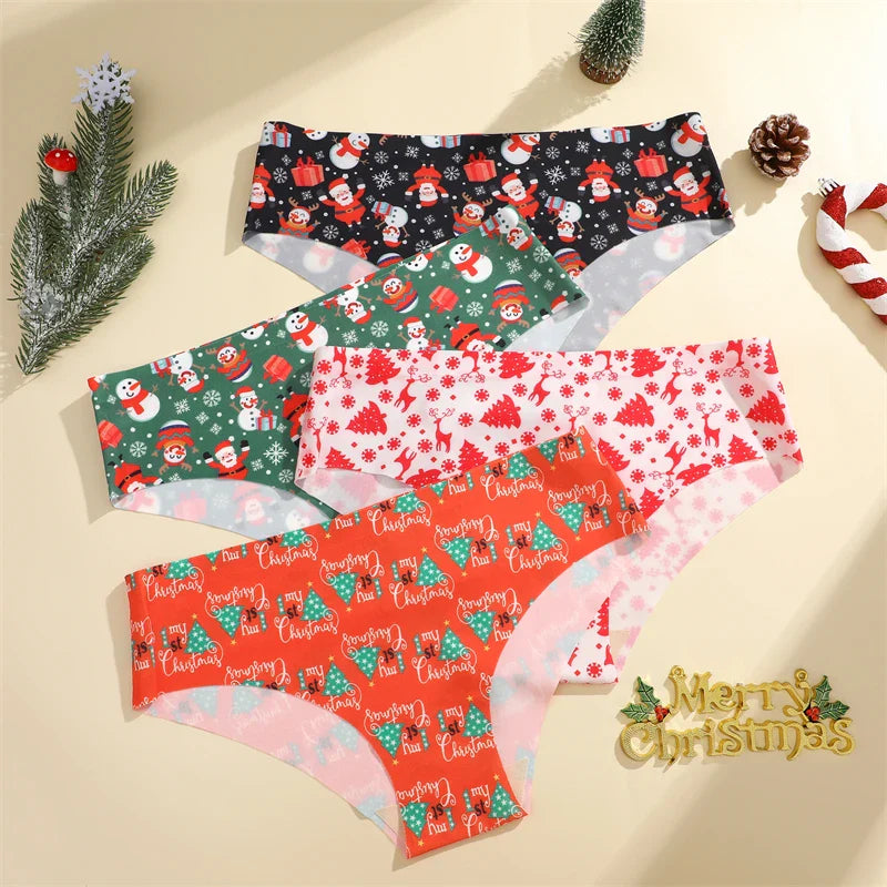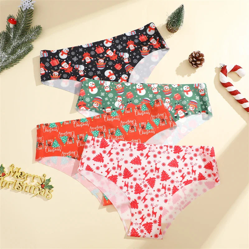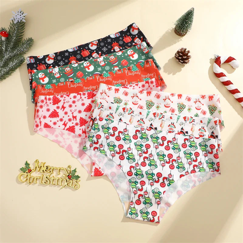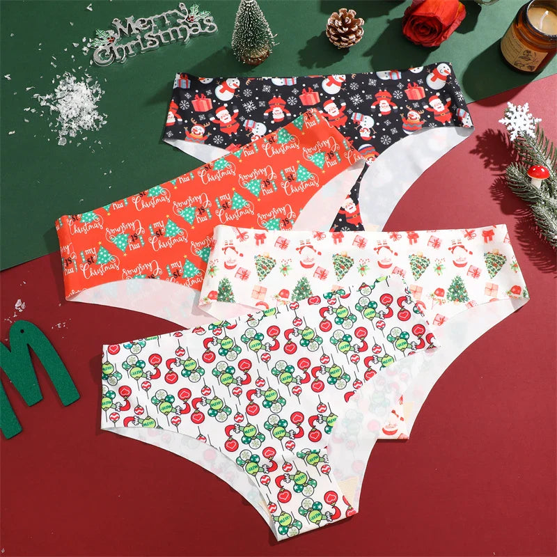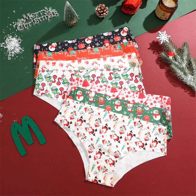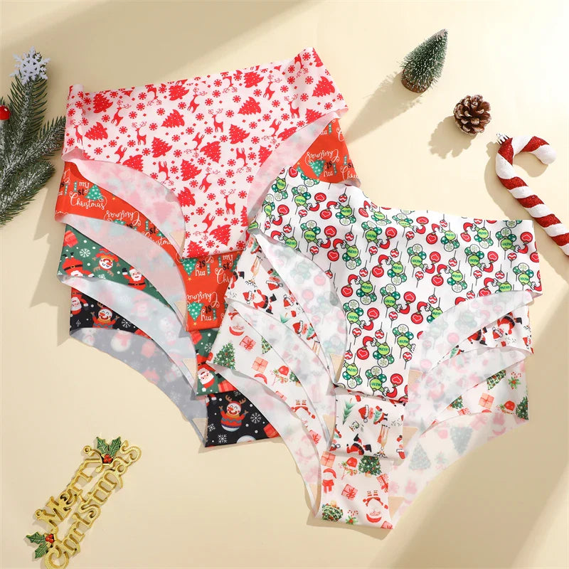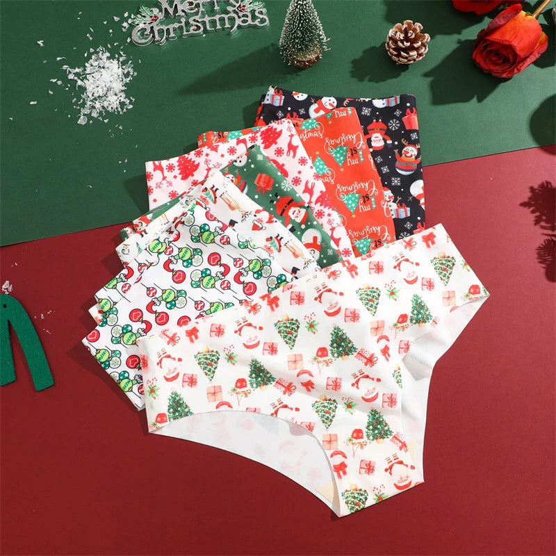 3Pcs/SET Women Seamless Ultra-thin Underwear Santa Claus Printed Panties Sexy Christmas Theme Briefs Comfortable Lingerie XS-XL