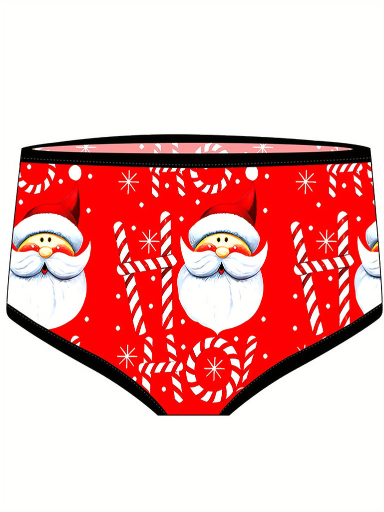 3pcs Women's Christmas-Themed Cartoon Reindeer Print Briefs - Breathable, Quick-Dry Polyester & Spandex Blend, Low-Rise, Seamless Comfort Fit Underwear Set