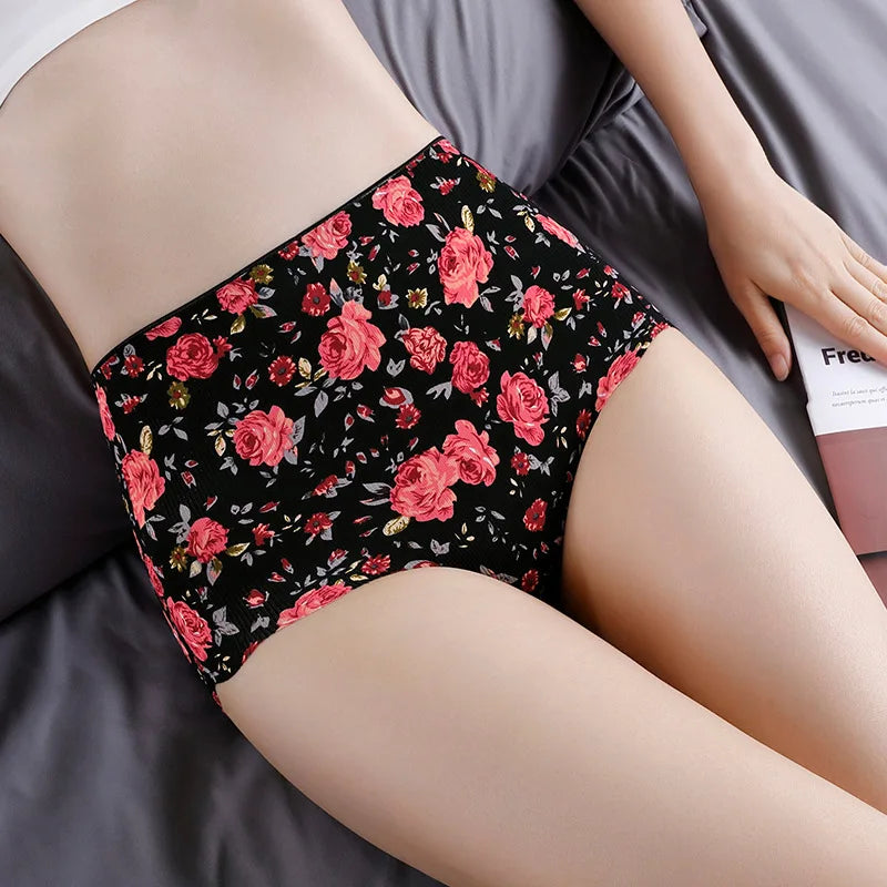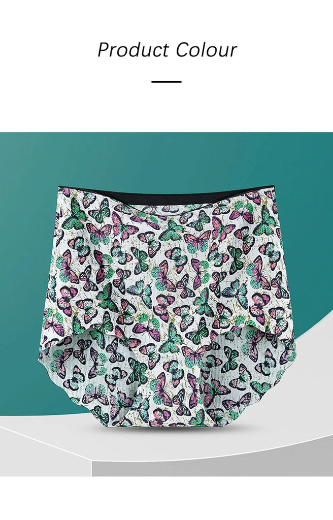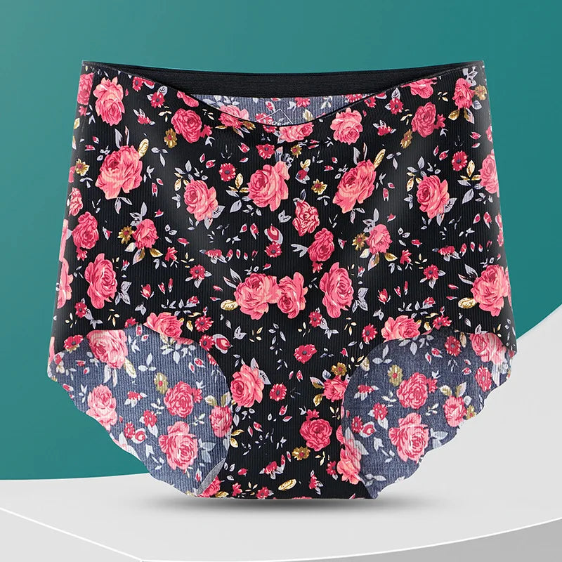 Sexy Women Seamless Underwear High Waist Women's Panties Flower Print Lingerie Ice Silk Intimate Briefs Female Panty Underpants