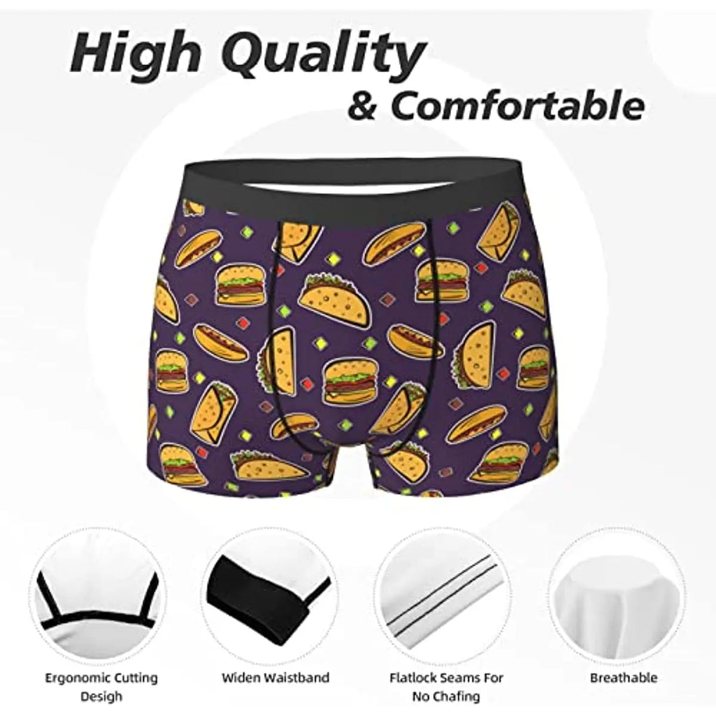 Taco Print Men Underwear Boxer Briefs Regular Sport Mens Boxer Briefs Underwear Men