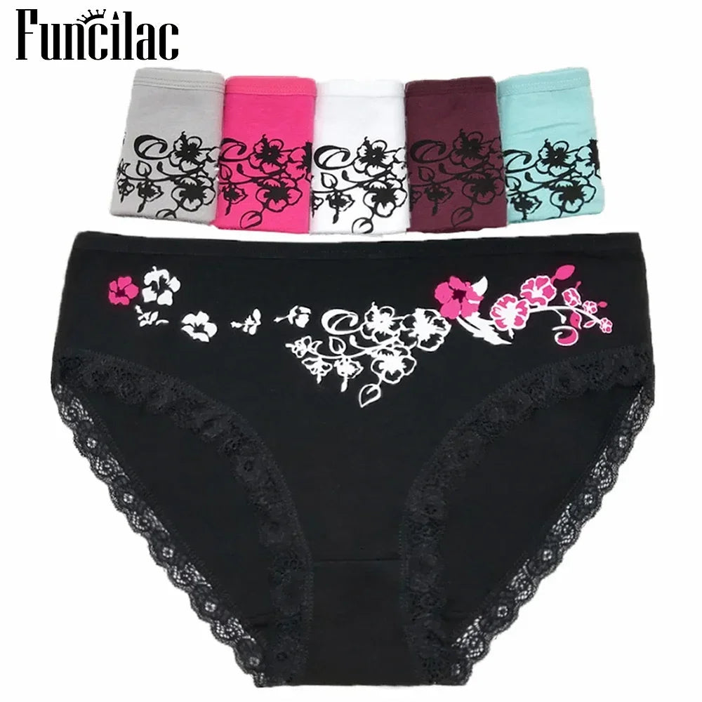 Woman Underwear Plus Size Panties Lace Sexy Underpants Girls Print Cotton Briefs For Women Fashion Female 6 Pcs/set