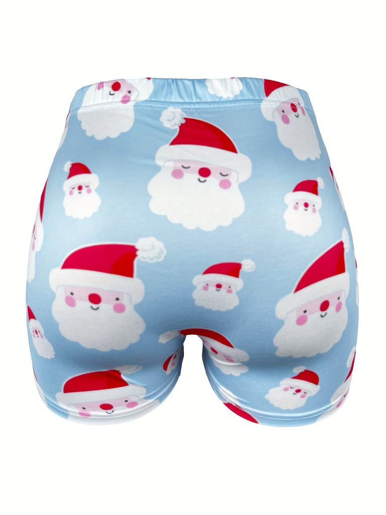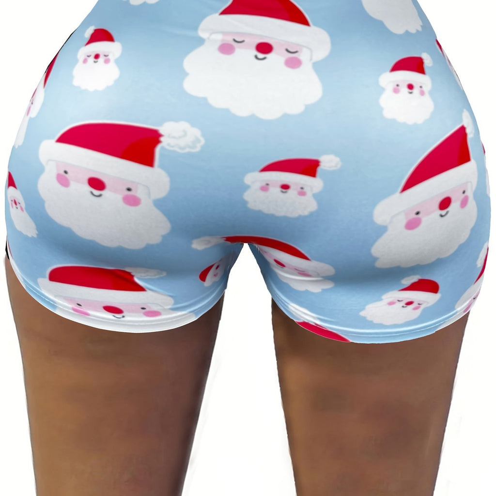 Women's Festive Christmas Santa Claus Print Casual Shorts - Comfy Polyester Blend, Machine Washable
