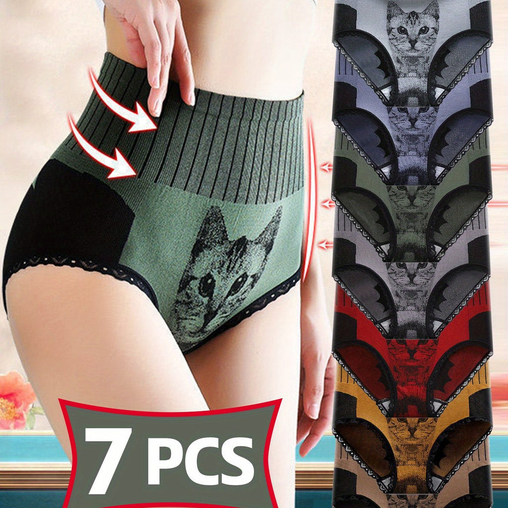 Women's Underwear 6 Pack Cat Print Cute Comfortable Breathable Women's Underwear Full Coverage High Waist Hip Lift Seamless High Elastic Women's Underwear
