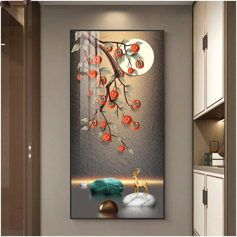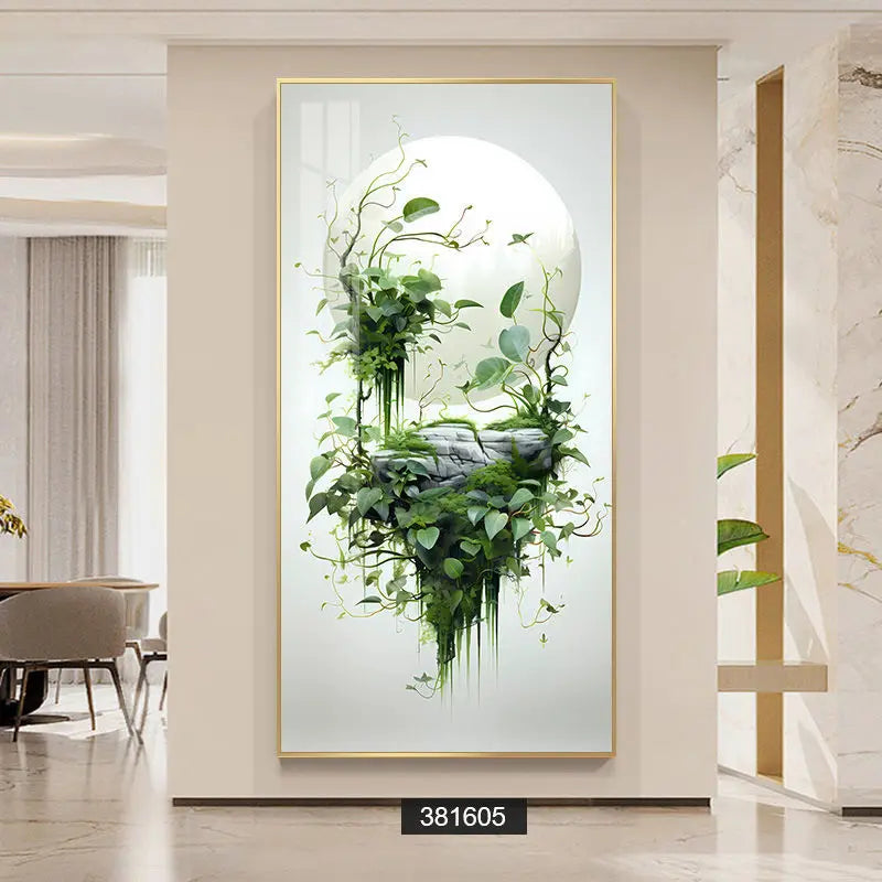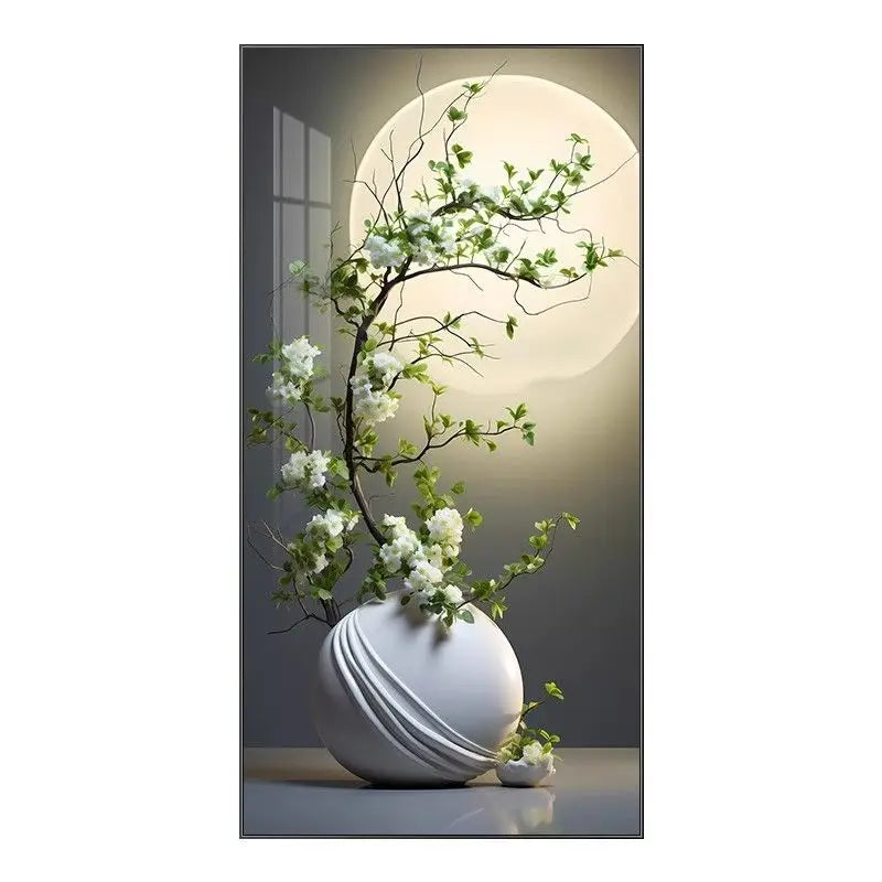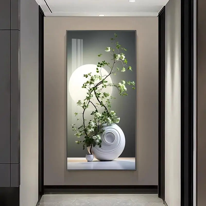 Chinese Style White Vase Cool Feeling Flower Canvas Painting Wall Art Full Moon Poster Prints Porch Extrance Wall Decor Unframe