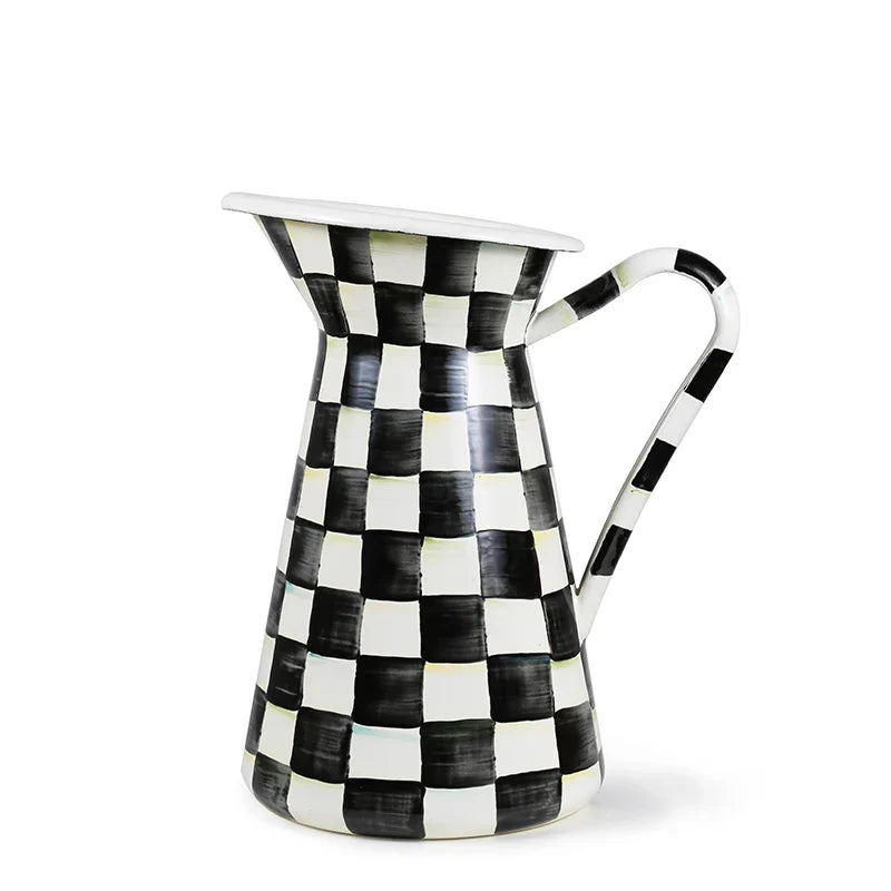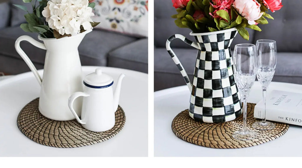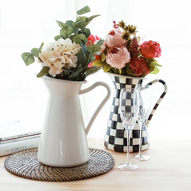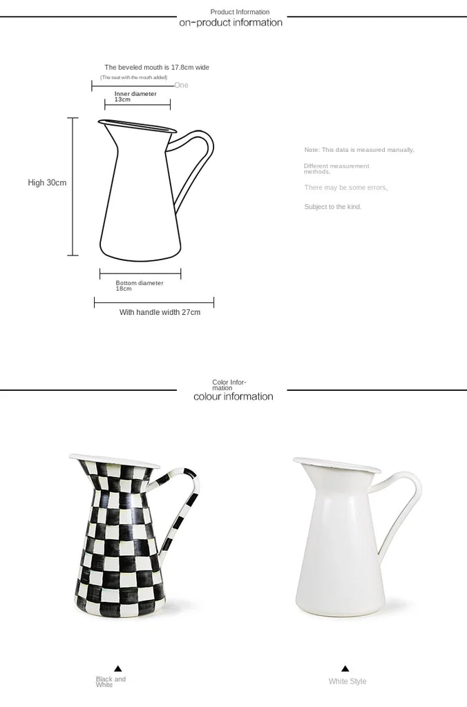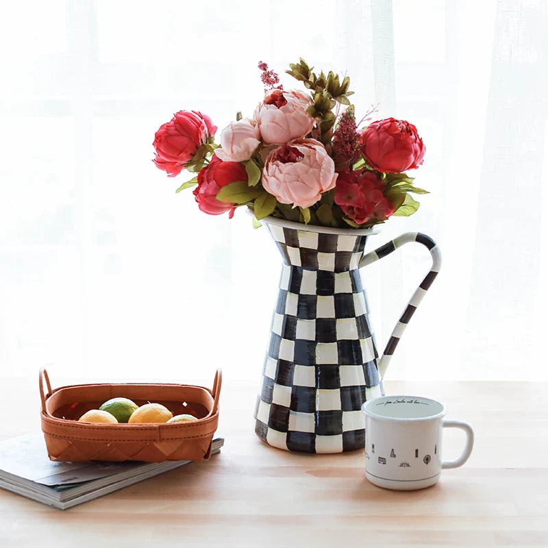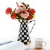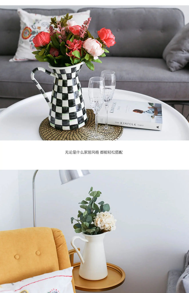 European Enamel Large Vase Home Metal Decoration Living Room Decoration Retro Black and White Grid Simple Artistic Vase
