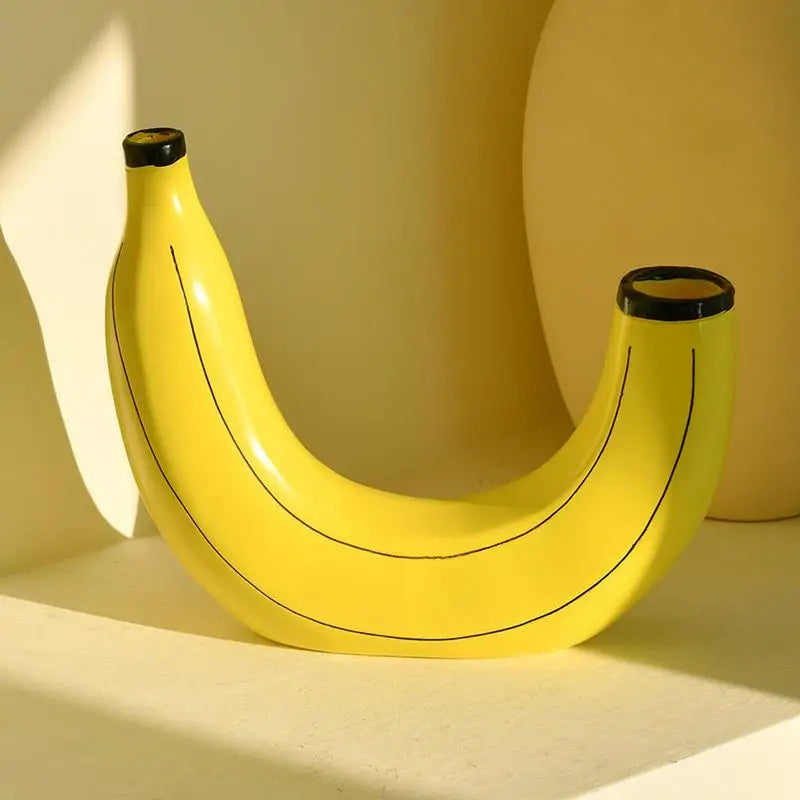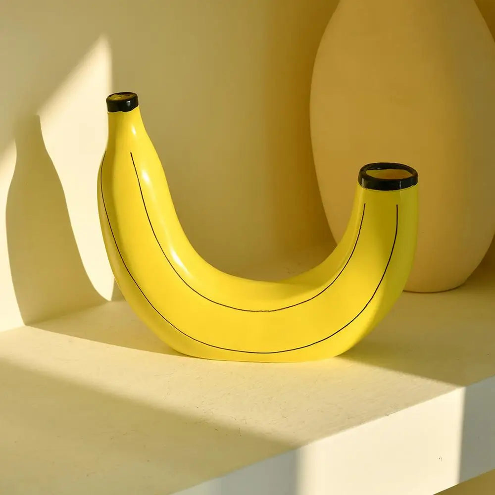 Resin Banana Flower Vase for Decor Creative Banana Shaped Vases for Flowers Cute Double Head Design Art Vases Flower Container