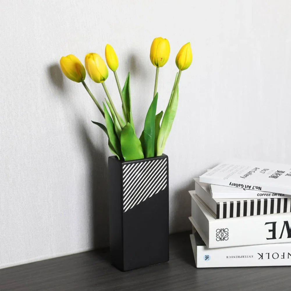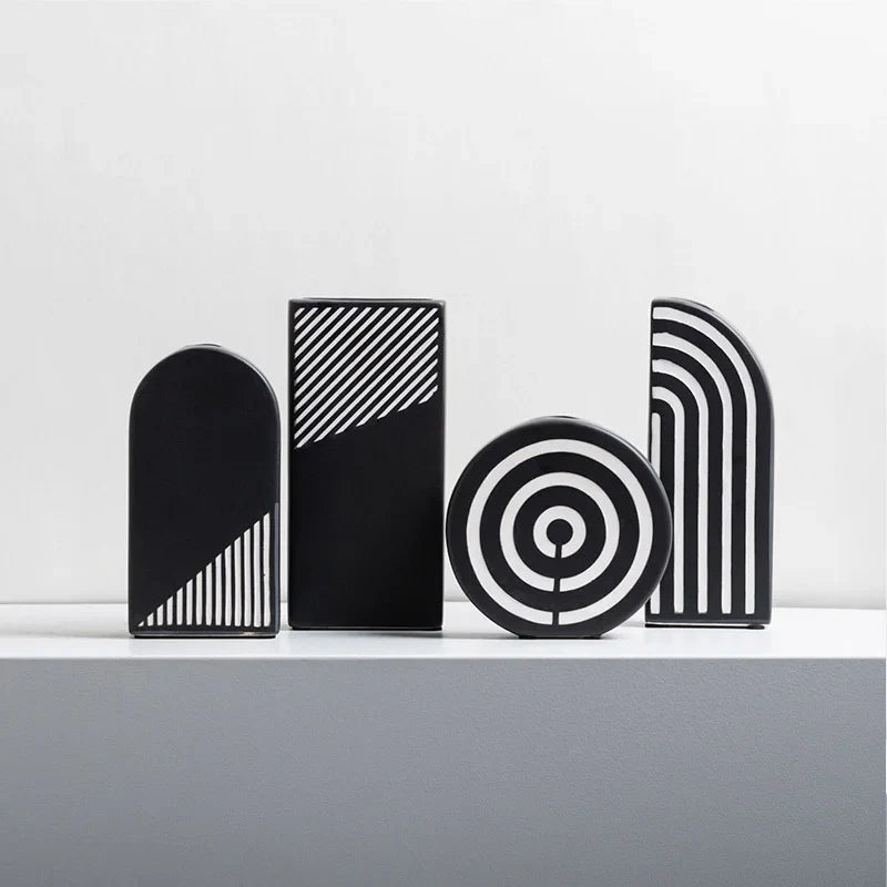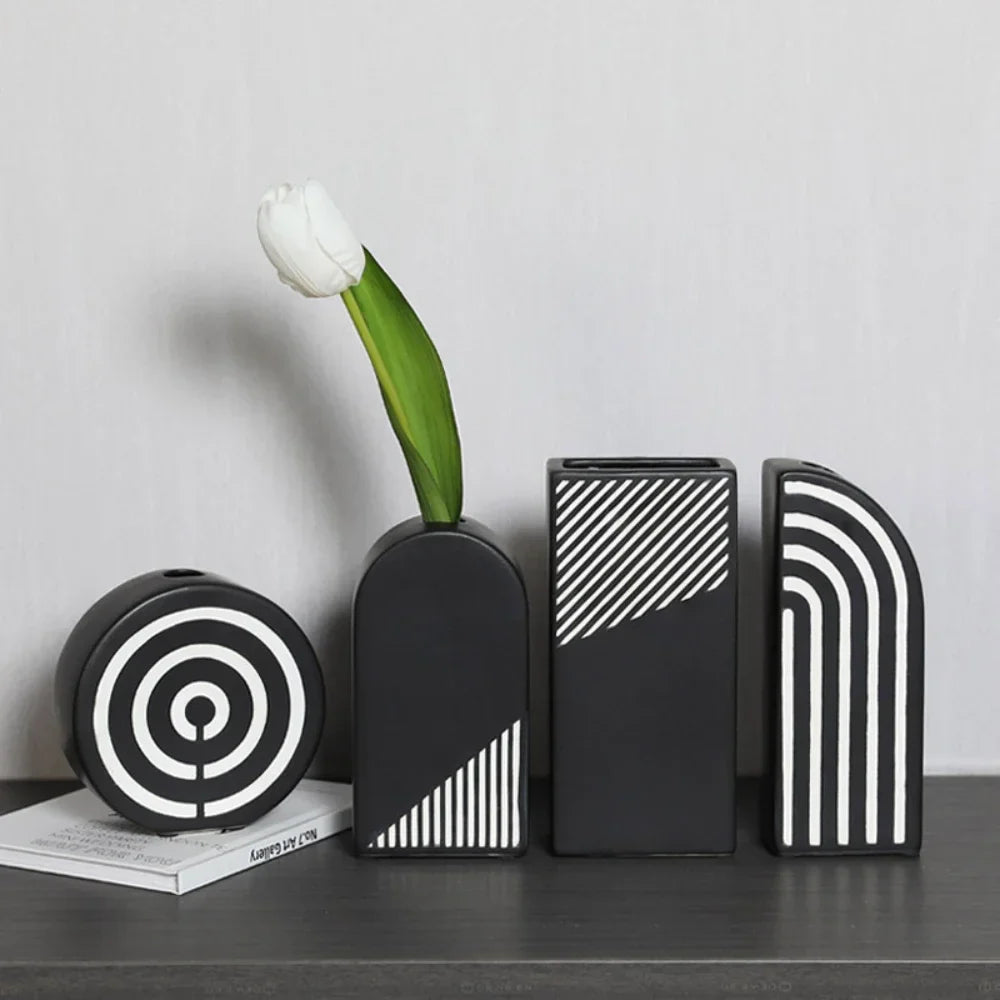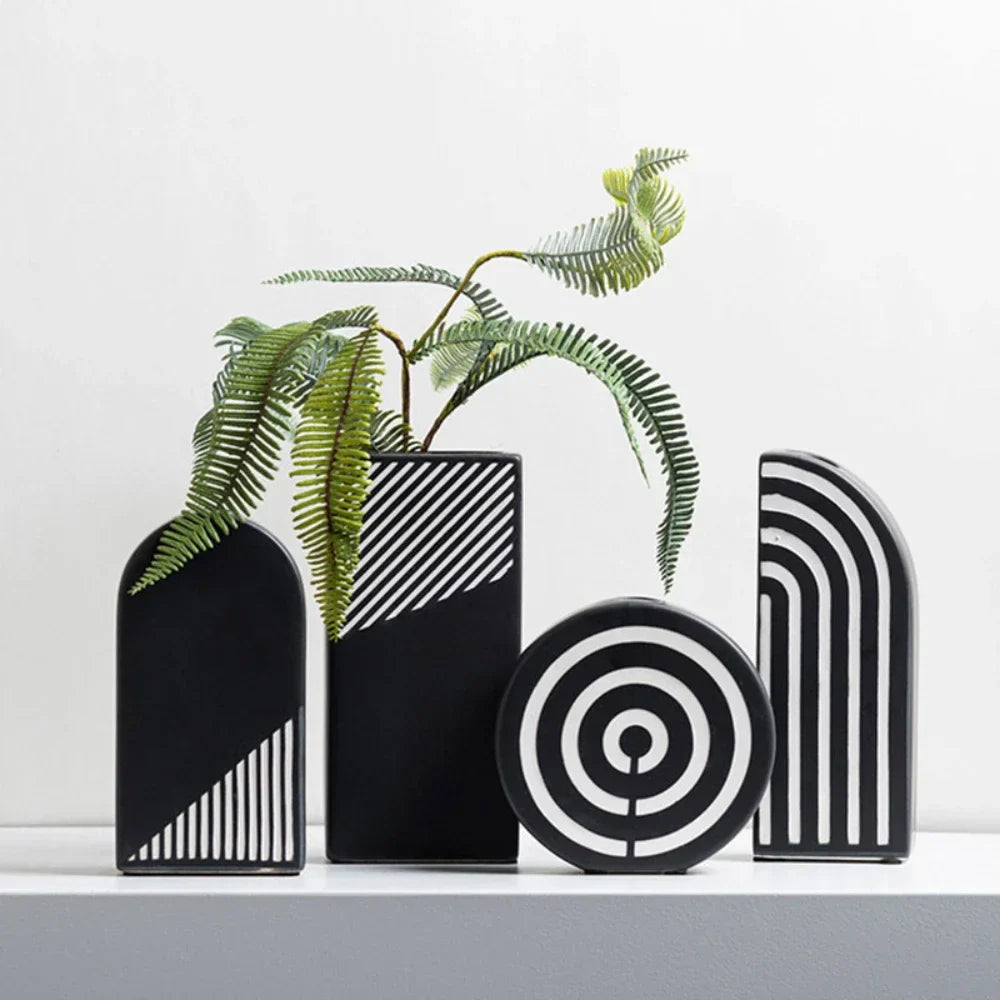 Simple Vase Black and White Stripes Ceramic Flower Vase Creative Home Decoration Living Room Flower Vase Home Furnishings
