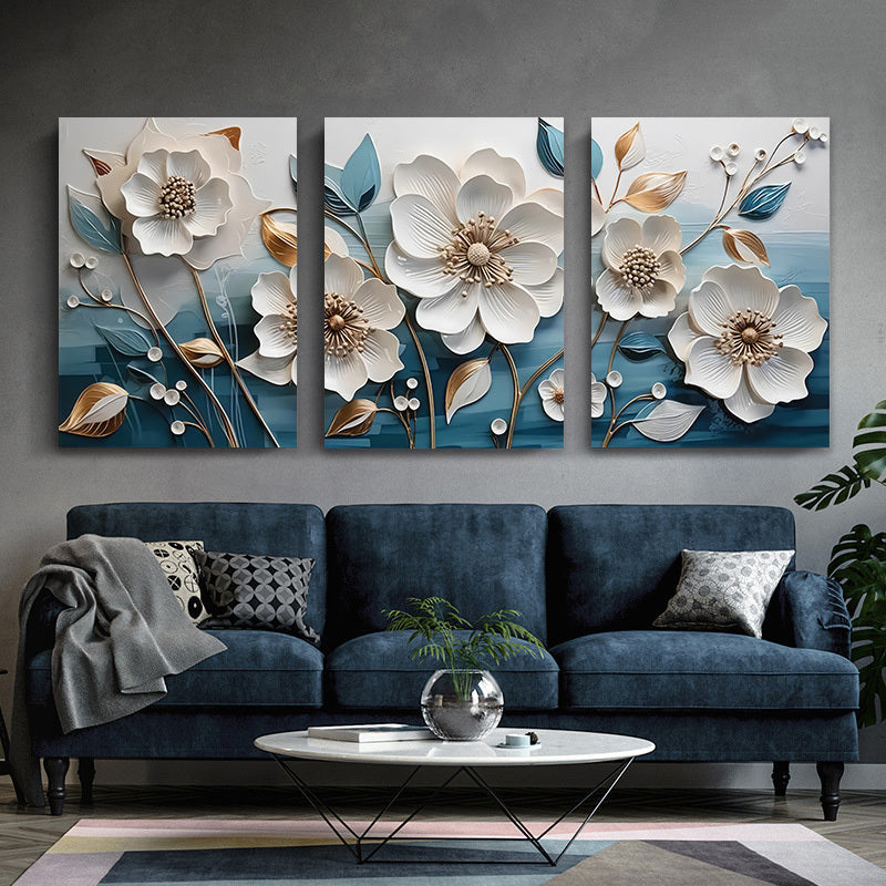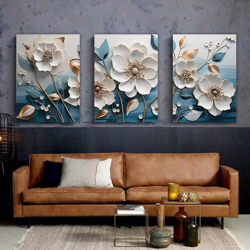 Framed 3 Piece 3D Effect Peony Floral Canvas Print Scandinavian Poster Flower Wall Art Poster Canvas Abstract Wall Art Elegant Wall Poetry Canvas Print Modern Aesthetic Wall Art For Home Decorating Living Room Bedroom