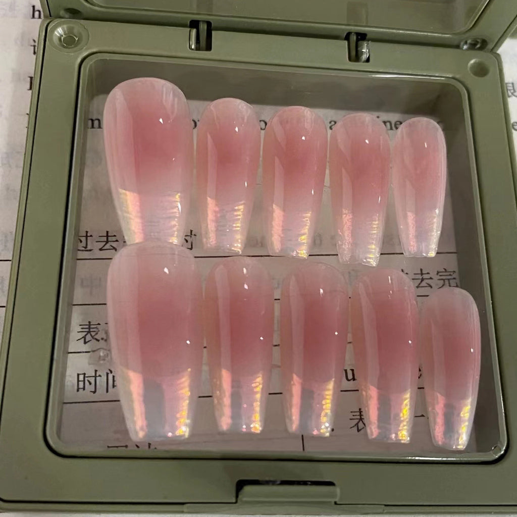 Blush Pleated French Handmade Manicure Wear Nail Fake Nails