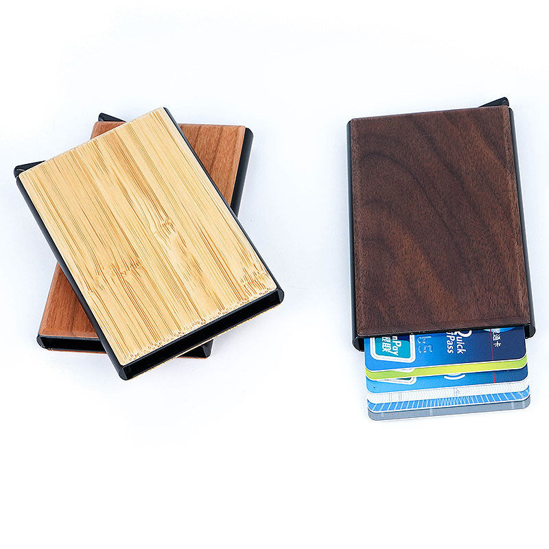 Creative Wooden Business Card Metal Sticker Wood Automatic Pop-up Bank Card RFID Box
