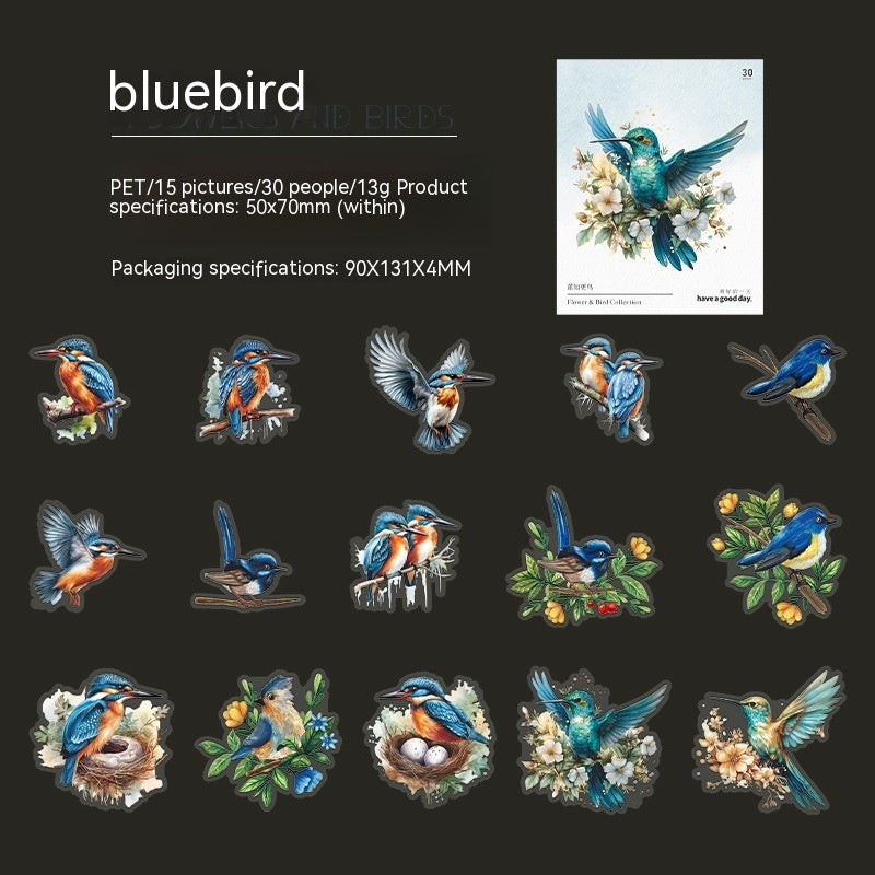 Color: water color Hummingbird, Robin Bird, blue back Mouse, blue robin, Flamingo, small parrot