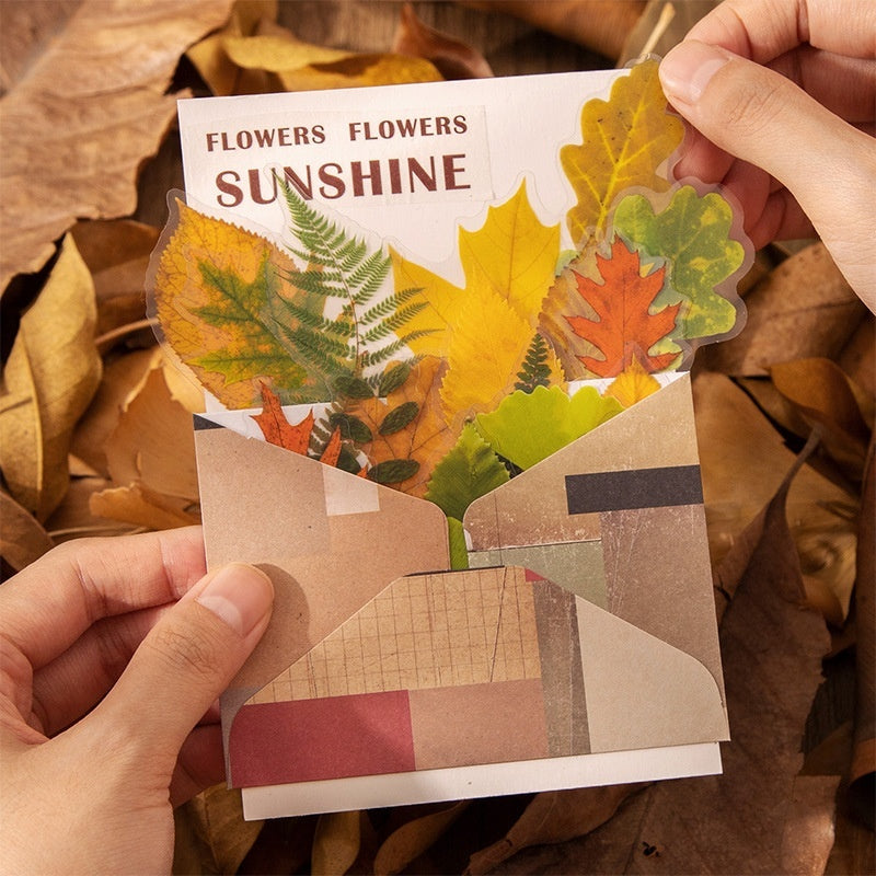Color: 1 five-pointed maple leaf, 2 ginkgo leaves in golden autumn, 3 fern leaves in wind blowing, 4 yellow branches and leaves, 5 autumn oak trees and 6 summer leaves