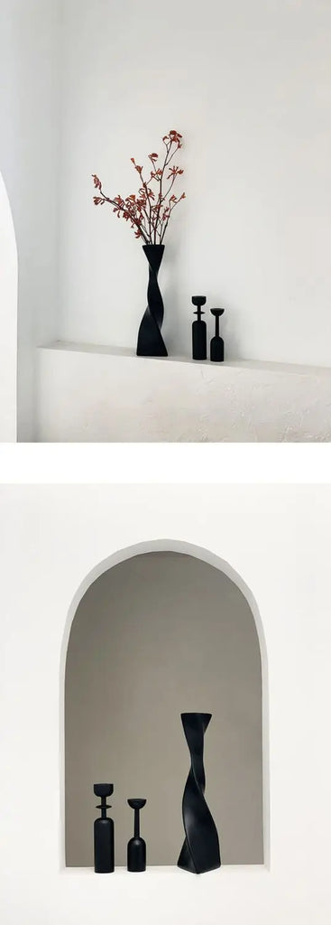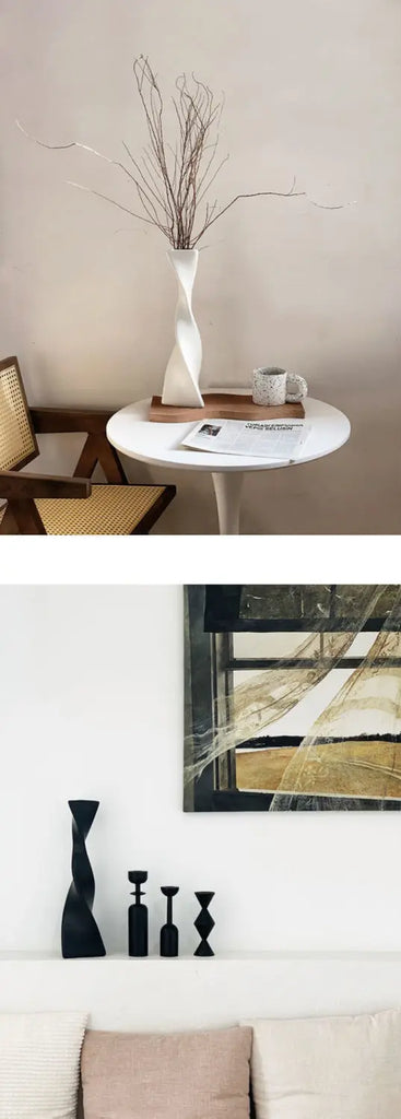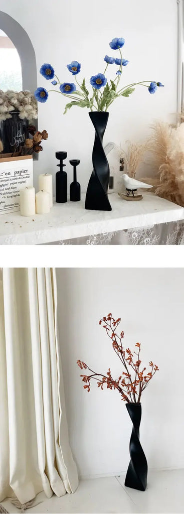 Nordic Black and White Twisted Ceramic Vase Decoration Living Room Fake Flower Simulation Flower New Year Home Coffee Shop Decor