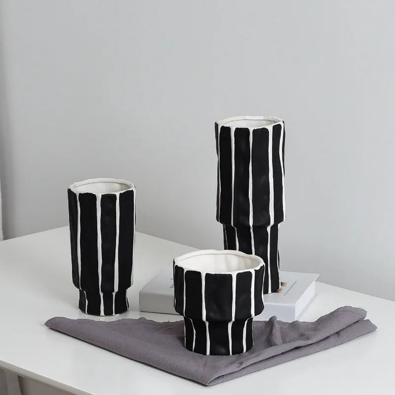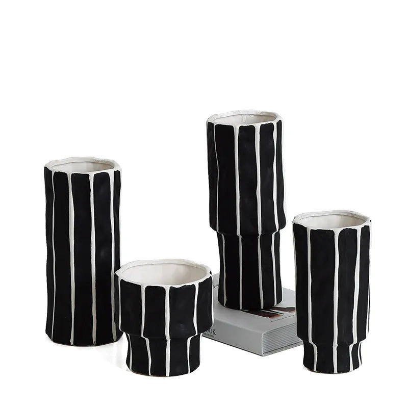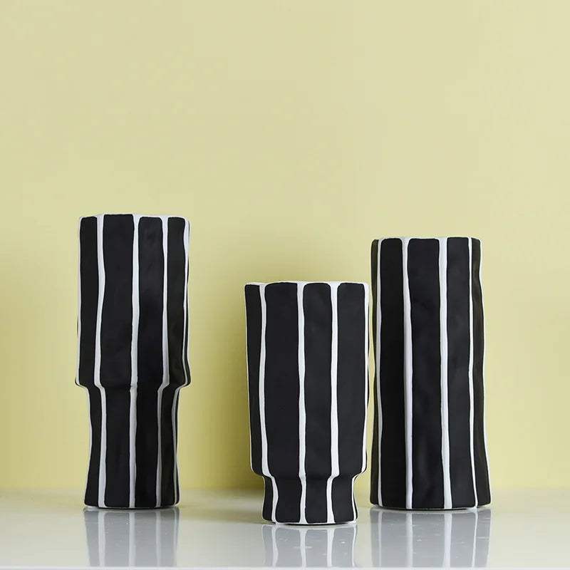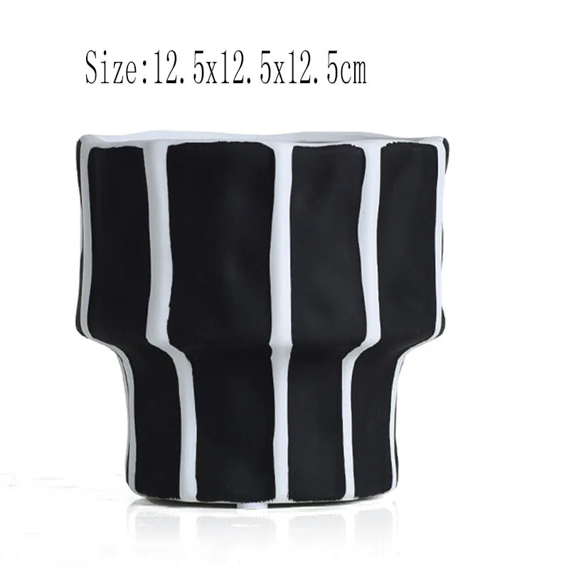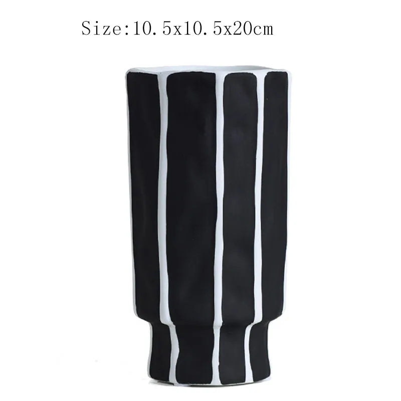 Nordic style ceramic vase simple Black white strip Home creative decorative Ceramic flower pot new year valentine Mother gift
