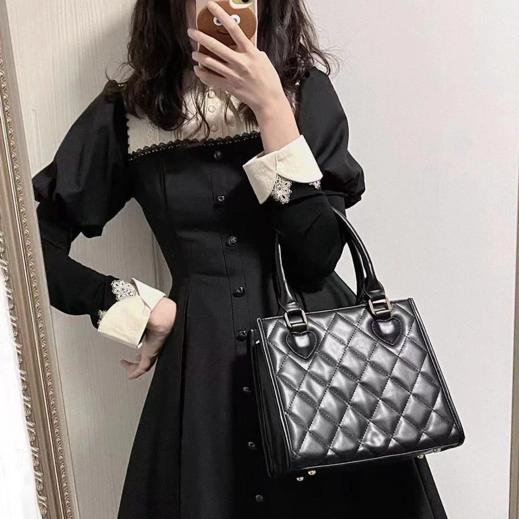 Rhombus Lace Japanese Cute Portable Crossbody Bag For Women